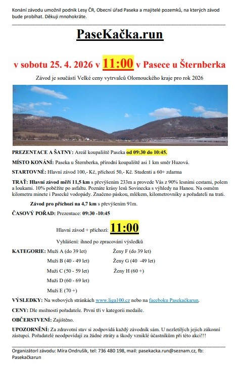 25.4.2026 se běžel 4.ročník krosu v Pasece-PaseKačka run v krásném prostředí lesů Paseckého vodopádu. Z naší skupiny jediný zástupce TJ Moravský Beroun-Jarda Pařenica v neustále lepším a lepším závodním tempu doběhl na pěkném 9.místě s 20sec. ztráty na 8.místo, kdy v kategorii 50-59let měl 13 soupeřů. Paráda Jardo!!!